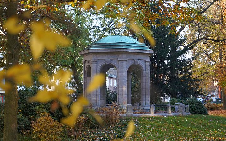 Der Tempel im Kaiser-Friedrich-Hain beherbergte vormals eine eine Bronzebüste des Hohenzollernkaisers Friedrich III.