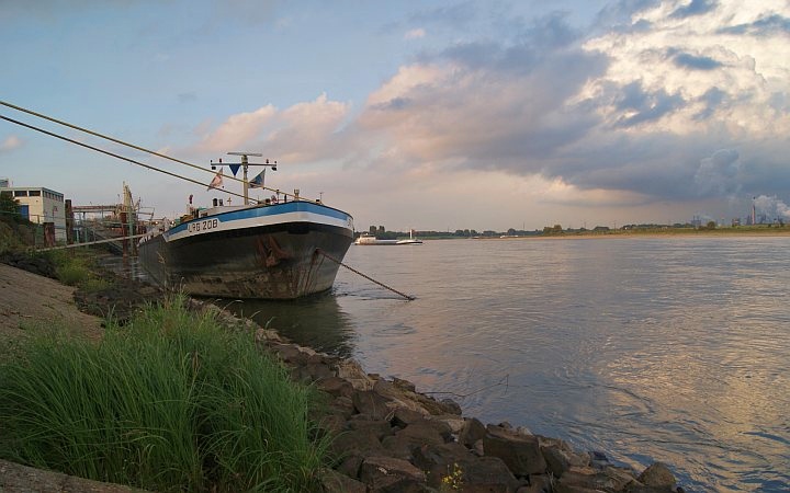 Abendstimmung an den den nördlichen Ankerplätzen des Uerdinger Rheinufers