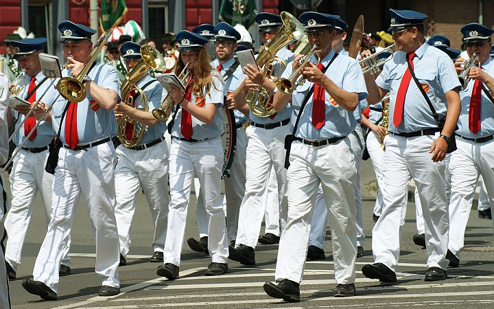 Spieler des Blasorchesters TV Jahn Bockum beim Schützenfest Krefeld-Ost